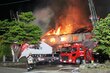 新潟市中央区で火事、会社の建物が燃える