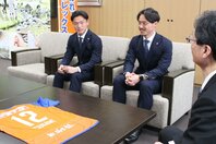 J1アルビレックス新潟・島田譲選手「みんなで優勝目指す」、石山青空選手「一日も早くデビューしたい」 新潟燕市ゆかりの2選手が市長訪問、活躍誓う