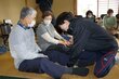 楽しく腰痛や肩こり解消♪ 新潟柔整専門学校の生徒ら、胎内市で高齢者向け健康教室