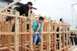「大屋根リング」と同じ工法!巨大ジャングルジムに歓声 長岡市の工務店制作、児童招きイベント