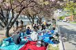 ニューヨークの八重桜の下、故郷の思い出話に花が咲く♪ NY新潟県人会が花見の会