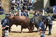 [動画あり]巨体のぶつかり合いモ~レツ!新潟小千谷市で国の重要無形文化財「牛の角突き」初場所 巧みな角使いに防御技、来場の1000人が歓声