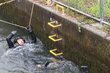 防止ネットやロープ…用水路の安全対策設備、効果は? スタントマン役が事故再現、村上市で実地検証