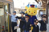 信号よし、大糸線出発! 糸魚川駅で児童が車掌体験、小学生が車内アナウンスや出発合図に挑戦
