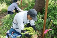 胎内市蔵王集落の住民が高坪山・蔵王権現堂跡への登山道のアカマツ林復活を夢見て苗を植樹 歴史ある地域の宝を後世に