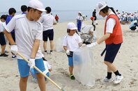 地元の海をきれいに♪ 胎内市の築地小、築地中、乙中の児童生徒らが村松浜を清掃