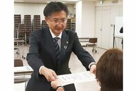 [見附市長選挙2025]無投票再選の稲田亮さんに当選証書「市民のための施策を実行」