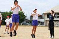 「マリオのように跳んでみて!」 長岡市栖吉小児童に県内トップレベルの陸上選手がレッスン