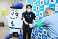 長岡駅前で自転車の鍵かけ&ヘルメット着用呼びかけ マナーアップモデル校の帝京長岡高生徒