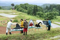 棚田に突如出現!アートなかかし 長岡・栃尾で長岡造形大生制作の作品がずらり