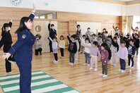 道路を横断する時は真っすぐ手挙げて、たった一つの命守ろう 新潟県長岡市のかわぐち保育園で交通安全教室