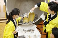 善意の募金ぎっしり 新潟県長岡市で歳末助け合い慈善釜の釜開け、34万円を社会福祉協議会に寄付