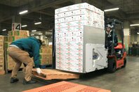 挟んでつかんで、パレット入れ替え迅速に! 新潟県の長岡中央青果、特殊フォークリフト導入