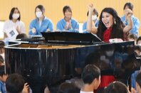 メロディー変えると校歌もジャズに♪ 新潟県長岡市出身のピアニスト山本真純さん、江陽中で演奏を披露