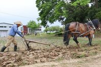 馬の力で田んぼの土を掘り起こす!? 新潟長岡市で伝統的な農法「馬耕」の見学会、迫力満点の姿に住民らが歓声