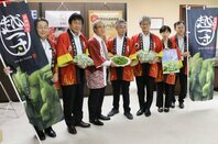 まだまだ枝豆の季節♪甘みと香りを体感して 長岡市の「越一寸」の生産者が花角英世・新潟県知事にPR