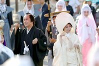 ほほ笑み満ちる幻想絵巻、阿賀町で「狐の嫁入り行列」 花嫁花婿ら100人が練り歩く