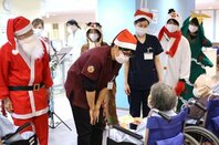 サンタが病室にやってきた!?阿賀野市の市民病院で院長らが仮装して回診 ハンドベルの演奏も☆