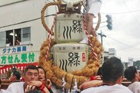 みこしのあおり豪快に 新潟県魚沼市堀之内地域で「十五夜まつり」、10団体が商店街を練り歩く