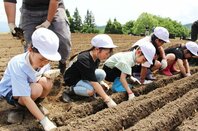 きれいなユリの花☆咲いたら見に来て 魚沼市堀之内の月岡公園で地元小学生40人が球根を植栽