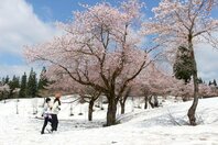 春と冬の共演…「雪上桜」満開!魚沼市の福山峠に100本以上、この絶景が見られる一般観桜は4月25日まで