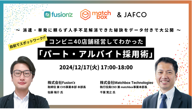 【12/17 無料ウェビナー開催】自前でスポットワーク!?コンビニ40店舗経営してわかった『パート・アルバイト採用術』