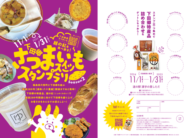 新潟県三条市下田の特産さつまいも「越(こし)の紅(くれない)」使用のスイーツ等のスタンプラリーを開催しています