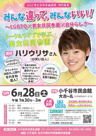 【新潟県小千谷市】6/28(土) お笑い芸人ハリウリサさん登壇!「トーク&ライブで学ぶ、男女共同参画」を開催します