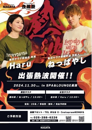 【スパ&ラウンジ長潟(新潟市中央区)】「豊蒸祭」企画のメインイベント「特別熱波師」の詳細が決定!11月30日に「毎日サウナ前橋店」から出張熱波師が来館!