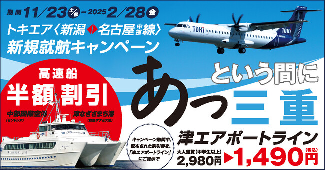 トキエア、「新潟=名古屋(中部)」新規就航を記念した“あっという間に三重”キャンペーンを開始