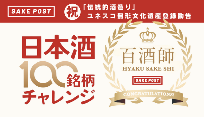 日本酒の違いを感じ楽しむ新たな称号“百酒師”誕生!ユネスコ無形文化遺産登録勧告のタイミングで、SAKEPOSTが全国の地酒の多様性に触れることを重視した「100銘柄チャレンジ」企画をスタート。