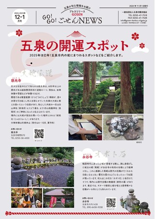 2025年は巳年!五泉市内の巳にまつわる開運スポットや「咲花温泉 冬の鍋祭り」など、冬の五泉も魅力満載! プレスリリース「GO!GO!ごせんNEWS」12月・1月号を発行しました