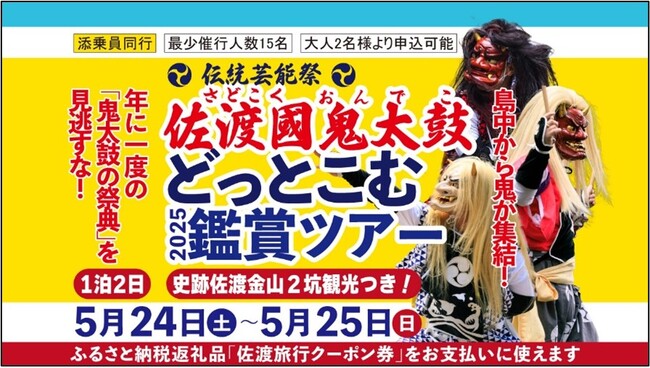 【佐渡汽船】 島中の鬼が集結!「佐渡國鬼太鼓どっとこむ2025鑑賞ツアー」発売