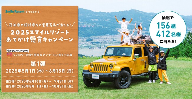 【スマイルリゾート】グランピングやホテルの宿泊券、アクティビティ券、リフト券など豪華賞品が合計156組412名様に当たる!「2025スマイルリゾートおでかけ懸賞キャンペーン」第1弾を開催