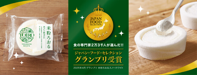 米粉ろおる (スノーホワイト) がジャパン・フード・セレクションにて最高賞のグランプリを受賞!新潟・十日町産魚沼コシヒカリの米粉100%使用のスポンジとソイクリームの自信作
