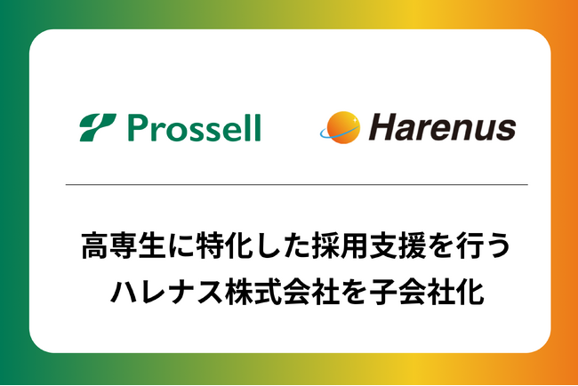 プロッセルが、高専生に特化した採用支援を行うハレナス株式会社を子会社化