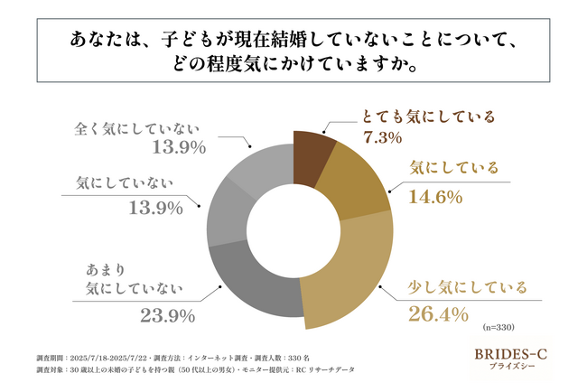 30歳以上の未婚の子どもを持つ50歳以上の親の約半数が、子どもが結婚していないことを気にしている!株式会社ブライズシーが「未婚の子どもを持つ親の”子どもの結婚”に関する実態調査」を実施