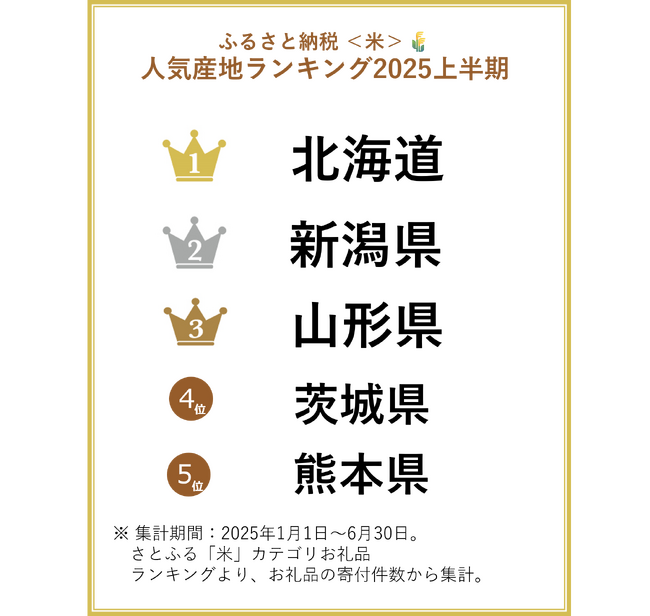 【ふるさと納税お礼品トレンド】ふるさと納税の「米」が引き続き人気!2025年上半期産地ランキングは山形や新潟を押さえ、北海道が1位に!