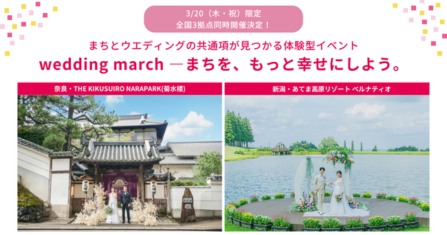 特別イベント「wedding march - まちを、もっと幸せにしよう。」 3月20日(木・祝)奈良・新潟でのイベント同時開催が決定!婚礼料理を気軽に食べられる婚メシ企画やウエディングツリーの展示も