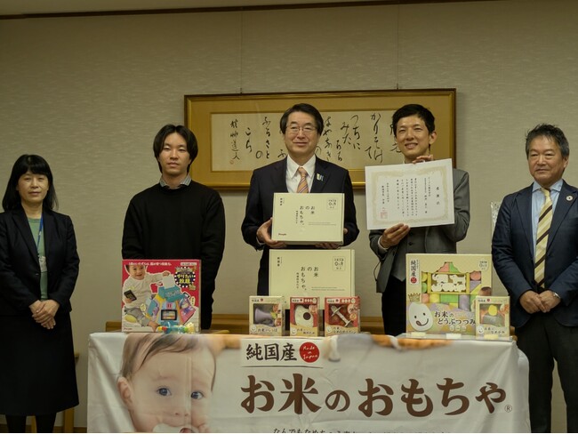玩具メーカーのピープル、新潟市に「お米のおもちゃ」を寄贈