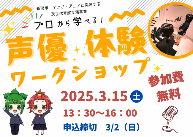 【次世代育成支援事業】プロから学べる体験会 シリーズ第2弾「声優体験ワークショップ」開催決定!