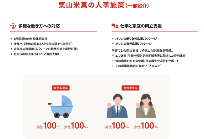 「ばかうけ」の栗山米菓、社員とその家族も支える福利厚生制度に拡充育児・更年期支援や、娘の出産の為の休暇など全ライフステージに対応
