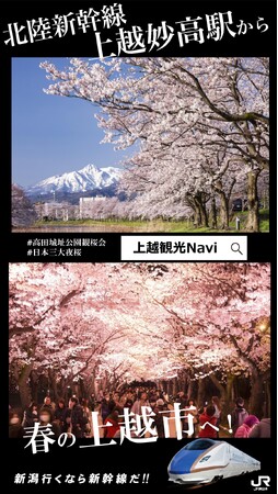 新潟の春がやってくる!上越エリアの「夜桜」、村上エリアの「町屋巡り」を中心に、新潟県のスポットを首都圏の一部駅のデジタルサイネージにて発信中