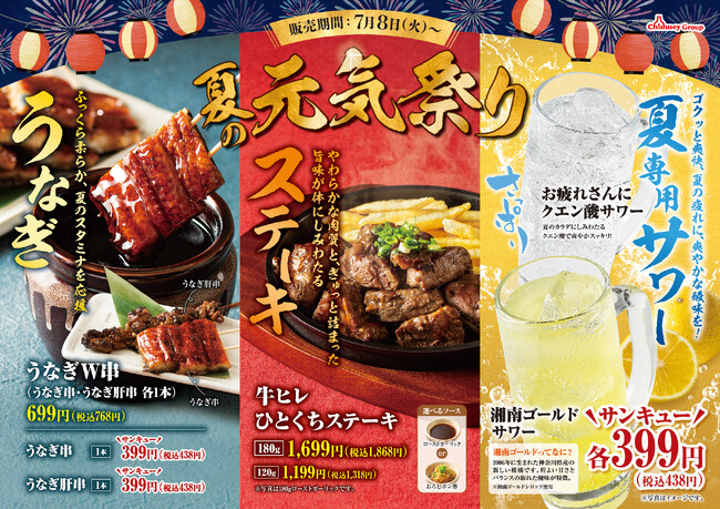 【チムニー株式会社】「夏の元気祭り」開催!うなぎ・ステーキ・クエン酸で疲れた体にパワーチャージ!