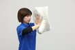 [にいがた元気エクササイズ]クッション挟み気軽に 道具活用編・胸の筋トレ