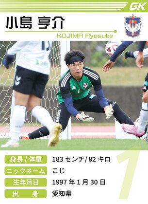 1 小島 亨介 KOJIMA Ryosuke 更新:2024/12/8 18:12 背番号 1 ポジション GK(ゴールキーパー) 出身 愛知県 身長/体重 183/82 経歴 下山FC-名古屋グランパス三好FC-名古屋グランパスU-18-早稲田大-大分トリニータ-現在 選手個人記録(2024 J1リーグ戦) 出場試合数 33 出場時間(累計) 2,970 得点 0 関連記事はこちら 2024/8/25 GK小島亨介がビッグセーブ!鬼門の試合終了間際、3試合連続無失点に貢献 2024/4/2 [J1アルビ新潟LAB~データで分析]<5>防ぐ、防ぐ、また防ぐ!“金城鉄壁”GK小島亨介、今節リーグトップの10セーブ 「反応と予測」で抜群の安定感(3月30日柏戦) 2024/3/30 ベテランDF千葉和彦、チームの窮地救う同点弾!空席の副主将にも意欲、「なぁ堀米、今日の試合を見れば分かるよな」 その他のシーズン 2023シーズン 同ポジションの選手(2024) 21 阿部 航斗 23 吉満 大介 39 西村 遥己 « 選手名鑑(2024シーズン) トップへ戻る