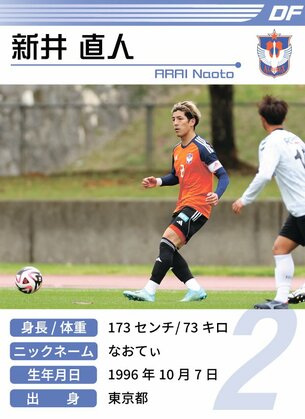 2 新井 直人 ARAI Naoto 更新:2024/12/8 18:12 背番号 2 ポジション DF(ディフェンダー) 出身 東京都 身長/体重 173/73 経歴 北沢キッカーズ-FC渋谷-実践学園高-新潟経営大-アルビレックス新潟-セレッソ大阪-徳島ヴォルティス-セレッソ大阪-アルビレックス新潟-2024年3月退団 選手個人記録(2024 J1リーグ戦) 出場試合数 3 出場時間(累計) 181 得点 1 関連記事はこちら 2024/2/24 開幕戦で“勝ち切れる”チームを証明!後半は主導権握り守備も奮闘、DF新井直人「ゴールを割らせないはチームの合言葉」 その他のシーズン 2023シーズン 同ポジションの選手(2024) 3 トーマス デン 5 舞行龍ジェームズ 18 早川 史哉 26 遠藤 凌 31 堀米 悠斗 32 長谷川 巧 35 千葉 和彦 42 橋本 健人 45 稲村 隼翔 « 選手名鑑(2024シーズン) トップへ戻る
