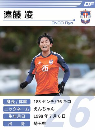 26 遠藤 凌 ENDO Ryo 更新:2024/12/8 18:12 背番号 26 ポジション DF(ディフェンダー) 出身 埼玉県 身長/体重 183/76 経歴 坂戸ディプロマッツFC-浦和レッズユース-桐蔭横浜大-アルビレックス新潟-いわきFC-現在 選手個人記録(2024 J1リーグ戦) 出場試合数 7 出場時間(累計) 452 得点 1 同ポジションの選手(2024) 3 トーマス デン 5 舞行龍ジェームズ 18 早川 史哉 31 堀米 悠斗 32 長谷川 巧 35 千葉 和彦 42 橋本 健人 45 稲村 隼翔 « 選手名鑑(2024シーズン) トップへ戻る