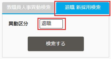 「退職 新採用検索」タブより、異動区分(退職など)で検索することもできます。