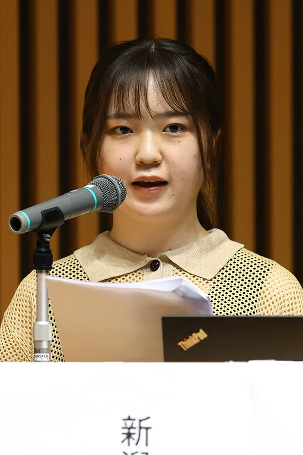 県都・新潟市をもっと輝かせたい-。20~30代の市民代表7人は6月から議論を重ね、若者の視点を生かした提言を作成。メンバーを代表して、広田有紀さんと山本華歩さんが発表した。